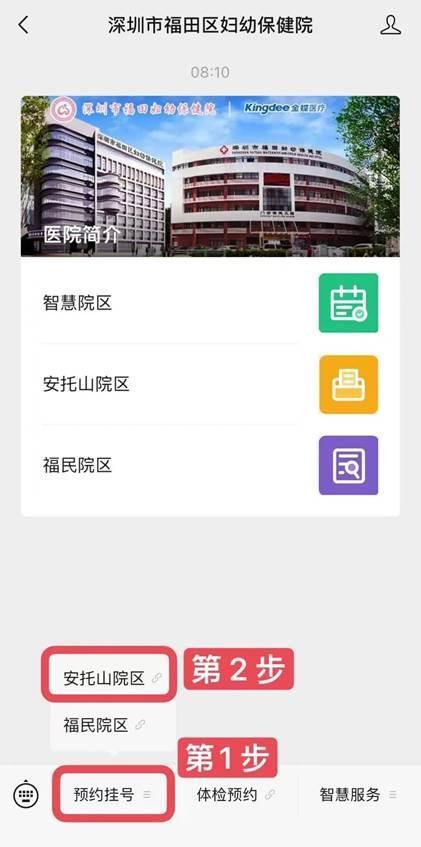 需要前往新院区就诊的小伙伴,可通过“福田区妇幼保健院”公众号,点击“安托山院区”,选择相应科室挂号预约。